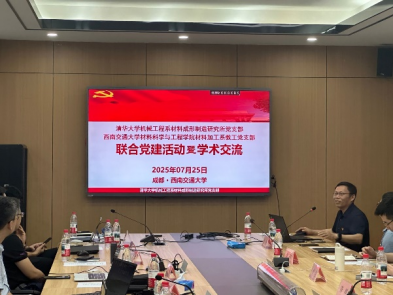 为深入学习贯彻党的二十大精神,加强校企党建交流与合作,7月25日,清华大学机械工程系党委书记邹贵生教授率队,联合北方华创科技集团股份有限公司、航天772所、清莲科技及成飞240厂等单位代表赴西南交通大学开展联合党建活动。西南交通大学材料科学与工程学院院长陈辉教授、副院长刘艳教授、材料加工系系主任兼书记吴影老师等参加,会议在J3310举行。