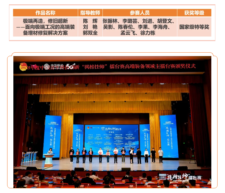 2025年10月14日,2025年度中国青年科技创新“揭榜挂帅”擂台赛“高端装备领域”终审主擂台赛在湖南长沙圆满落幕。在学校校团委的指导下,材料科学与工程学院青年教师张振林等老师的作品“极端再造,修旧超新——面向极端工况的高端装备增材修复解决方案”在众多参赛作品中脱颖而出,代表学校斩获青年科技人才赛道特等奖,这是学校在“挑战杯”这一全国顶级科创赛事“揭榜挂帅”赛道上,首次斩获特等奖,实现了这项荣誉的“零突破”,以硬核科创实力诠释“青春为中国式现代化挺膺担当”的赛事主题。
